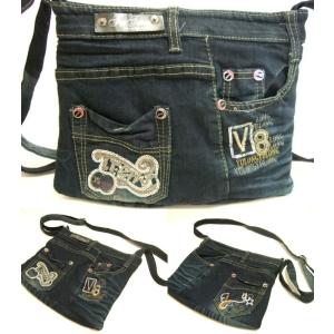 横浜最新 魅惑のデニム小型軽量ショルダーバッグ角型紺♪リメイクオリジナルバッグ横巾約28cm縦23cmマチ無しメンズレディース送料無料hei89