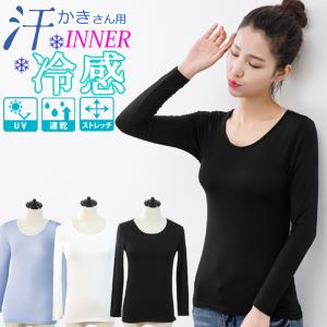 冷感 長袖 インナー ドライ 丸首 ラウンドネック レディース 汗対策 脇汗 汗染み ストレッチ 吸汗速乾 y