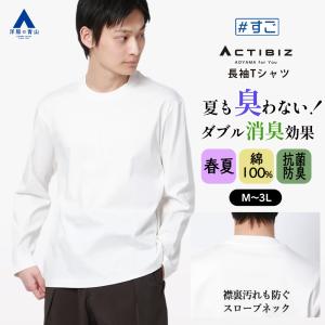 【洋服の青山】臭わないTシャツ 綿100% ニオイ抑制 tシャツ 長袖 メンズ 春夏秋冬 ホワイト 無地 大きいサイズ スロープネック 長袖tシャツ ロンT 抗菌 防臭