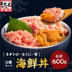 ますよね うに ねぎとろ かに 混ぜやすい3種海鮮丼 600g 約5杯分 ミョウバン不使用ウニ100g マグロ粗挽ネギトロ200g 日本海産紅ズワイほぐし身300g カニ