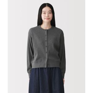 カーディガン 婦人 ワッフル編みクルーネック長袖カーディガン レディース