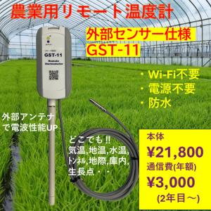 農業用リモート温度計 GST-11 外部センサ仕様(1年間の通信費込み/SIGFOX回線/防水/乾電池式) 遠くの畑やビニールハウスの温度をスマホで遠隔監視!