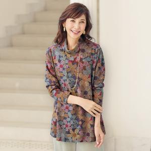 プルオーバー トップス レディース おしゃれ 秋冬 ミセス シニア ファッション 40代 50代 60代 70代 80代 プリントロングプルオーバー