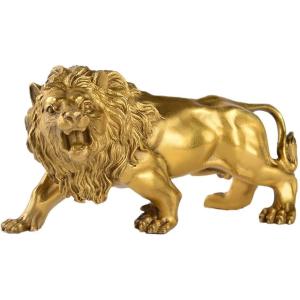 風水グッズ 獅子 銅製ライオン レオ お守り 置物 風水アイテム MDM(ゴールド)