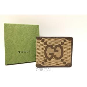 経堂) グッチ GUCCI メンズ 2つ折り財布 札入れ JUMBO GG CANVAS ブラウン 699308 正規 美品 箱、保存袋付