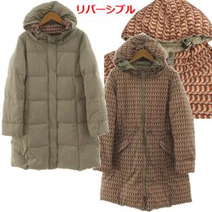 ドゥクラッセ DoCLASSE フーディリバーシブルダウンコート 18854-130 ウエストドローコード ジップアップ ベージュ 総柄 オレンジ 茶 S