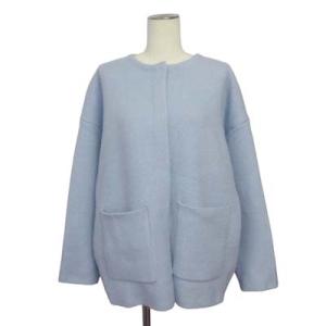 ドゥクラッセ DoCLASSE ダブルフェイスニット ノーカラーコート S/M 水色 レディース