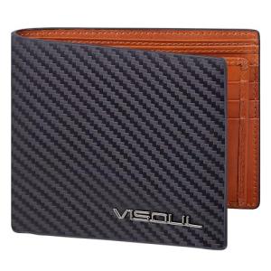 [VISOUL] 財布メンズ 本革 15枚カード収納 カーボンレザー 2つ折り財布 メンズ 小銭入れなし 財布二つ折り 免許証入れ 折りたたみ財