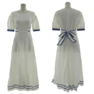 リリーブラウン Lily Brown 綿ロングワンピース LWFO202063 ピンタック 半袖 マキシ丈 リボン 配色 コットン オフ白 ブルー F