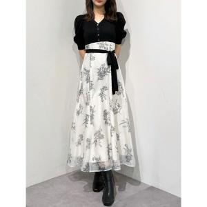 ワンピース ブーケ花柄ニットドッキングワンピース