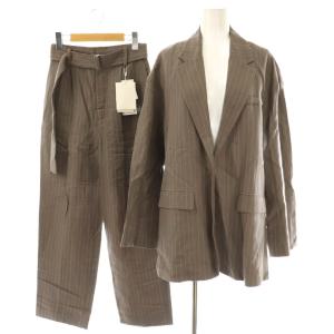 未使用品 ミラオーウェン Mila Owen サイドスリットビッグジャケット パンツ スーツ セットアップ 上下 ストライプ 0 グレー
