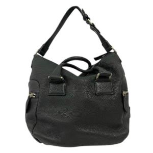 NAGATANI ナガタニ ハンドバッグ 肩掛け 無地 シボ加工 ファスナー開閉 シルバー金具 黒 ブラック レディース