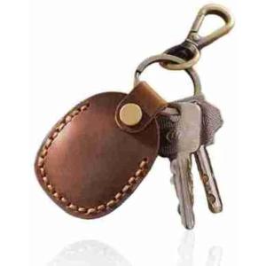 AirTag ケース ビンテージ加工 レザー キーホルダー キーリング 小銭 収納 edyコイン QUICPayコイン 革(ブラウン)