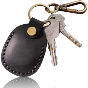 -Libra- キーホルダー AirTag edyコイン QUICPayコイン ケース 本革 ICチップ キーリング (1-ブラック)