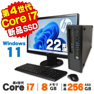 中古 HP EliteDesk 800 G1 USDT 22型ワイド液晶セット 第4世代 Core i7 4770S メモリ8GB 新品SSD256GB DVDROM Win11 Pro デスクトップパソコン Office付き