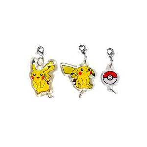 中古雑貨 ピカチュウ(立ち)&ピカチュウ(座り)&モンスターボール アクリル3連キーホルダー