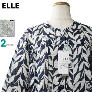 パジャマ Lサイズ レディース 春夏 7分袖 8分丈パンツ ELLE エル リップル 綿100% 凸凹 丸首 前あき 全開 婦人ナイトウエア
