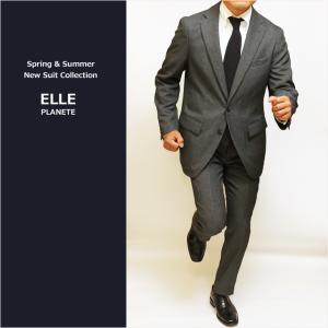 ほぼスーツ メンズ 新作 春夏 秋冬 通年 ELLE PLANETE エル プラネット 灰グレー杢無地 家庭洗濯可能 2つボタン ほぼオールシーズン スーツ ゆったり型 次世代