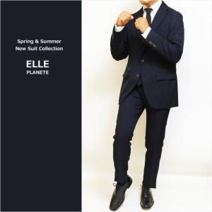 ほぼスーツ メンズ 新作 春夏 秋冬 通年 ELLE PLANETE エル プラネット 濃紺ネイビー杢無地 家庭洗濯可能 2つボタン オールシーズン スーツ ゆったり型 次世代