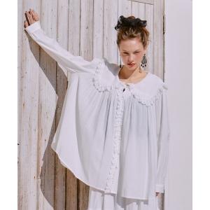 ブラウス シャツ レースカラーギャザーブラウス レディース