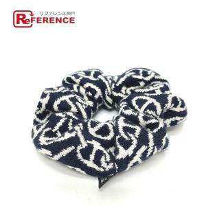 新品同様 HERMES エルメス クラウディア シェーヌダンクル柄 ヘアアクセサリー シュシュ ブラック レディース【中古】