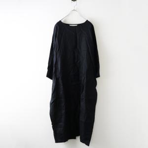 美品 ナチュラルバイスタジオクリップ natural by studio CLIP リネンボートネックワンピース F\ブラック ドレス【2400014618914】