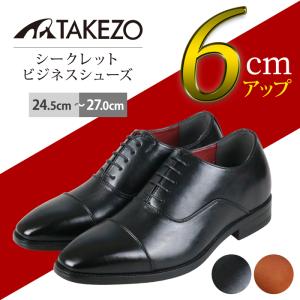 シークレットシューズ 6cm メンズ ビジネス 革靴 ヒールアップ 3E 内羽根 ストレートチップ 身長アップ 紳士靴 コスプレ TAKEZO 結婚式 ドレスシューズ