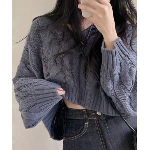 ニット セーター Vネッククロップド丈 長袖 ケーブルニットトップス ケーブル編み プルオーバー オフィスカジュアル きれいめカジュアル 韓国風 レデ