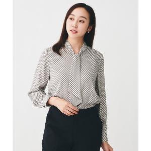 ブラウス シャツ 「ボウタイ/通勤スーツ/オフィス」スクエアプリントブラウス レディース