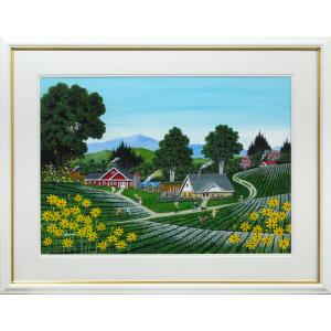 金井 英明「干し草ロールがゴーロゴロ」肉筆アクリル画1点物12号■田園幻想画アーティスト■三越個展■札幌出身【小竹美術】真作保証