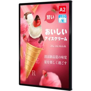 LEDポスターパネル 薄型 卓上 壁掛け 光る看板 光るポスターフレーム ポスター入れLED看板 電飾看板 高輝度 高照度5500Lux A2サイズ