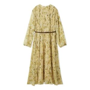 ワンピース プリーツ花柄ベルト付きワンピース