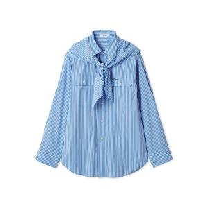 ブラウス シャツ スカーフ付きストライプワークシャツ レディース
