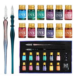 Mancola ペン2*本体 インクガラスディップペンインクセットレインボークリスタルガラスペン、アート、ライティング、署名、書道、装飾用の12