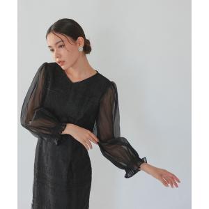 ドレス 結婚式 お呼ばれ 二次会 謝恩会 成人式 同窓会 対応 20代 30代 オーガンジー レース チュール袖 長袖 ミディ丈 ロング フォーマル