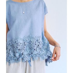 ブラウス シャツ 裾レースリネンブラウス レディース