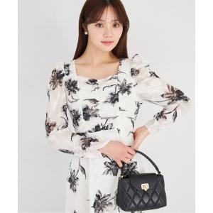 ブラウス シャツ ボウタイタック入り花柄ブラウス レディース