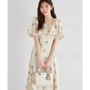 全方位モテを狙うネックリボン付きラッフルフリルリボンプリントワンピース tocco closet(トッコクローゼット)《RibbonCollection》