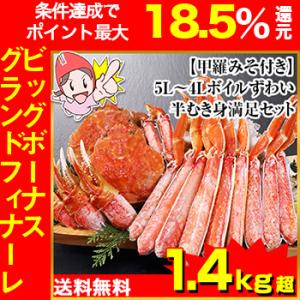 かに カニ 蟹 ズワイガニ ボイル | 【甲羅みそ付き】5L〜4Lボイルずわい半むき身満足セット 1.4kg超
