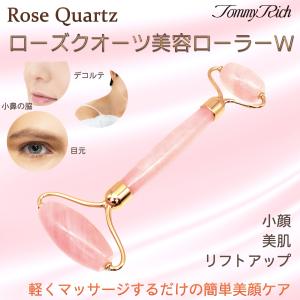 美顔ローラー ローズクォーツ 美容ローラーW トミーリッチ OM_211 フェイスローラー マッサージローラー 天然石 美顔 小顔 むくみ たるみ 顔コリ ほうれい線