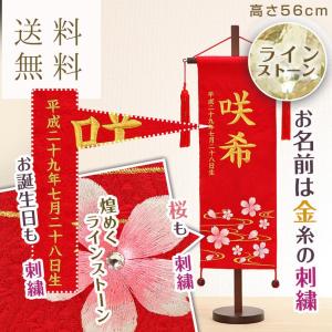 名前旗 ひな祭り お名前・お誕生日入り 刺繍 ぼかし桜(赤) 特中サイズ 名物裂金糸刺繍 ラインストーン