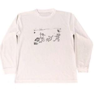 わけあり 鳥獣戯画 ロング ドライ Tシャツ カエル ウサギ 名画 アート グッズ ロンT 白 アニマル アウトレット