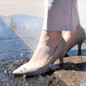 パンプス レインパンプス ポインテッドトゥ 6センチヒール レディース ブラック 黒 ベージュ 痛くない クッション 低反発 雨晴れ兼用 梅雨 通勤 MJ0003b-hr