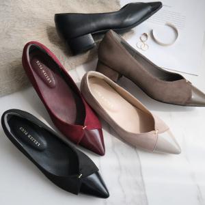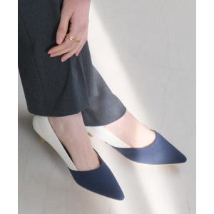 パンプス ポインテッドトゥ バイカラー 太ヒールパンプス