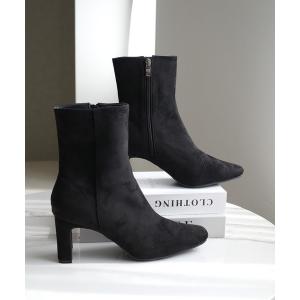 [アミアミ]スクエアトゥブーツ ブーツ 快適 8cmヒール SY205 (ブラック(スムース))