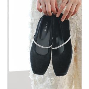 パンプス スクエアトゥラインストーン バブーシュ/ローヒールパンプス