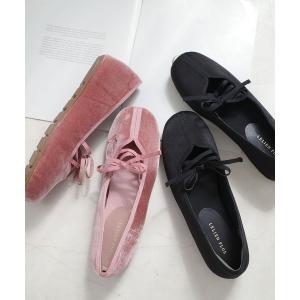 バレエシューズ パンプス 「インヒール付き」レースアップバレエパンプス /バレエコア