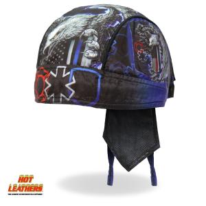 Hot Leathers ヘッドラップ イーグル 黒 青 [Thin Line Eagle Headwrap] バンダナ ヘルメットインナー サイズフリー 米国直輸入 バイクに!