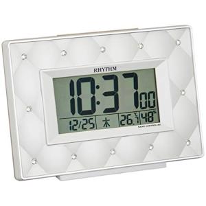 リズム(RHYTHM) 目覚まし時計 電波時計 デジタル 装飾ガラス ベージュ パール 9.9×13.9×5.1cm フィットウェーブアビスコ