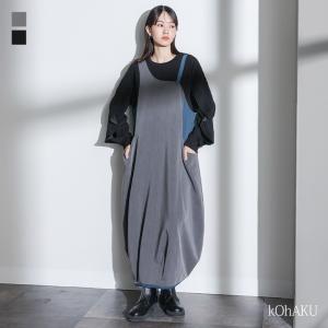 ジャンパースカート レディース ワンピース ロング丈 ジャンスカ レイヤード 重ね着 コクーンワンピース 配色 返品交換不可 「メール便不可」「30」